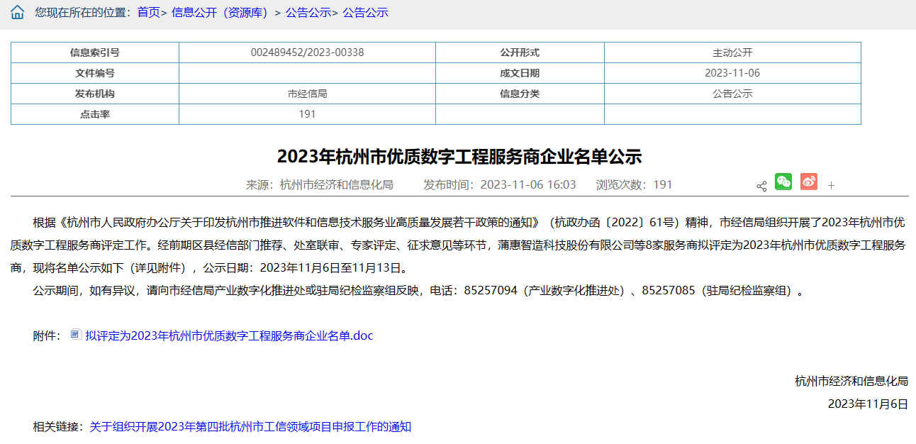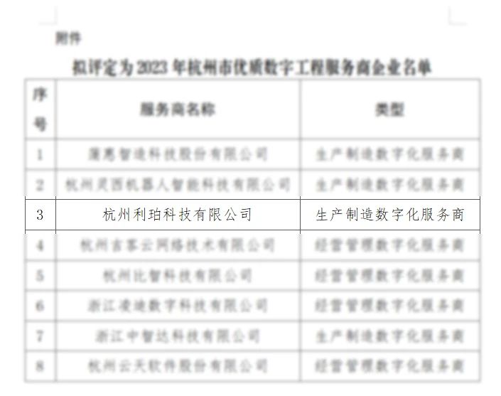 市經(jīng)信局組織開(kāi)展了2023年杭州市優(yōu)質(zhì)數(shù)字工程服務(wù)商評(píng)定工作,杭州利珀科技有限公司獲評(píng)杭州市優(yōu)質(zhì)數(shù)字工程服務(wù)商企業(yè)。
