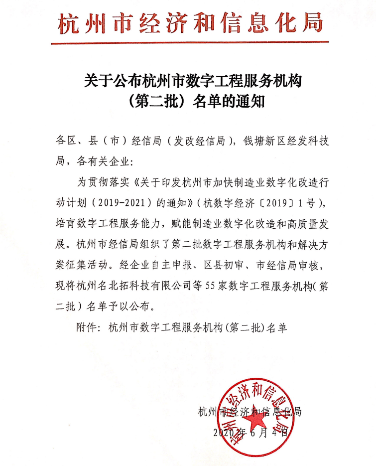 為了貫徹落實《關于印發(fā)杭州市加快制造業(yè)數(shù)字化改造行動計劃(2019-2021)的通知》(杭數(shù)經濟【2019】1號),培育數(shù)字工程服務能力,賦能制造業(yè)數(shù)字化改造和高質量發(fā)展。杭州市經信局組織了數(shù)字工程服務機構和解決方案征集活動。經區(qū)縣初審、市經信局審核,杭州利珀科技有限公司等55家企事業(yè)單位入選“杭州市數(shù)字工程服務機構(第二批)”名單。
