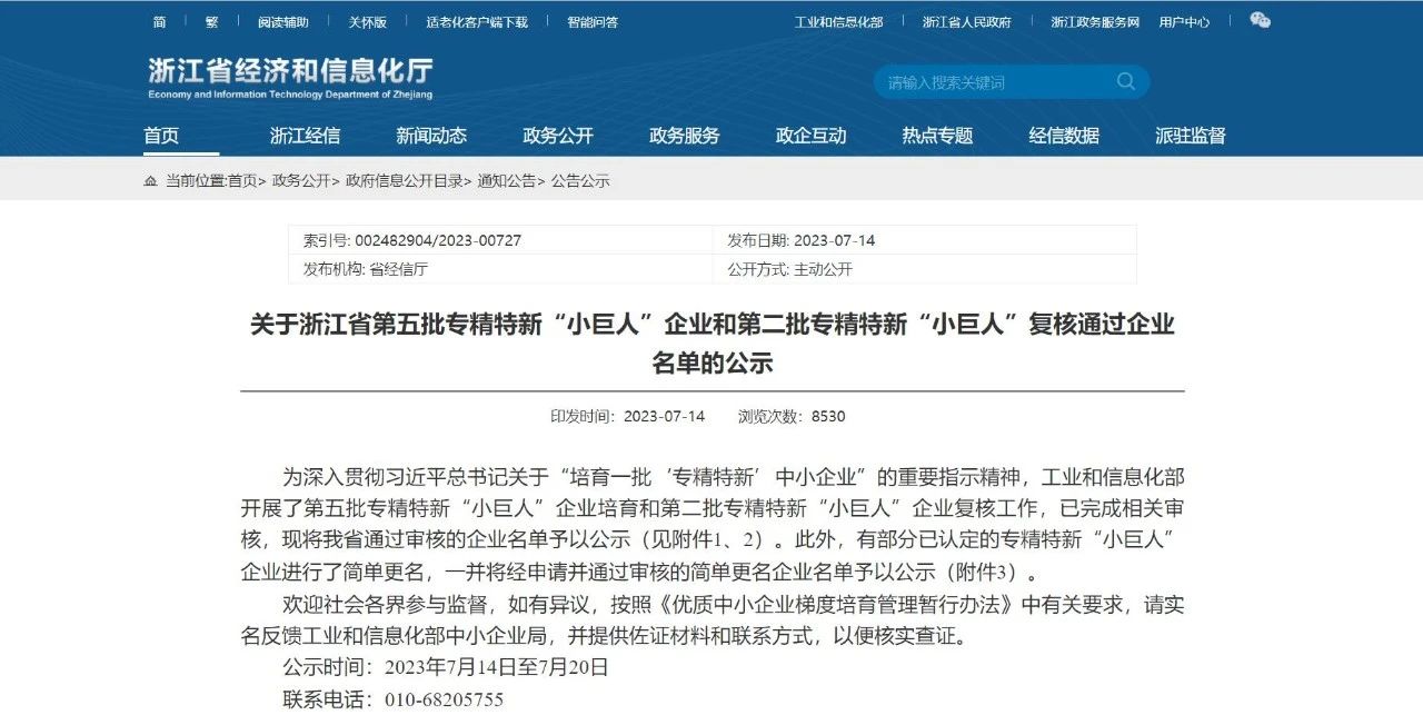 2023年7月,浙江省第五批專精特新“小巨人”企業(yè)名單正式公式,利珀科技通過(guò)層層嚴(yán)格評(píng)審,憑借優(yōu)異的技術(shù)創(chuàng)新能力、突出的成長(zhǎng)速度和廣闊的發(fā)展前景入選該名單,榮獲國(guó)家級(jí)專精特新“小巨人”企業(yè)稱號(hào)。