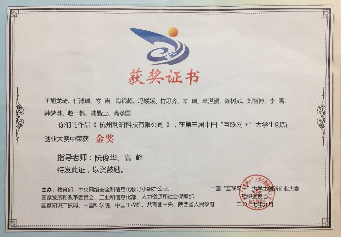 中國“互聯(lián)網(wǎng)+”大學(xué)生創(chuàng)新創(chuàng)業(yè)大賽金獎