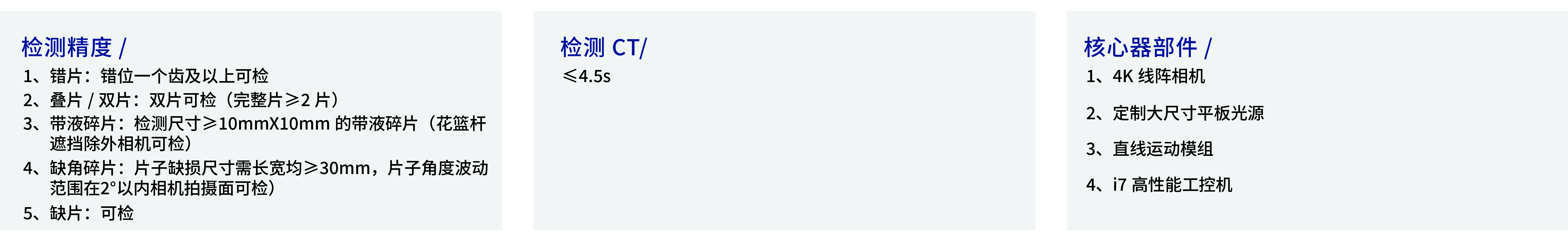 主要用于刻蝕下料處對(duì)花籃檢測(cè)可視范圍內(nèi)的碎片、疊片、錯(cuò)片、缺片、無花籃、插片不齊、漏拋